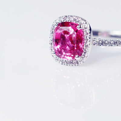 Cushion Pink Sapphire And Diamond Cluster Ring