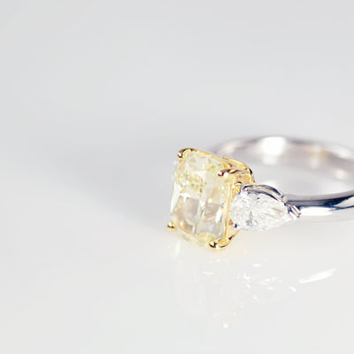 Emerald Cut Yellow Diamond With Pear Shaped Diamond Shoulders