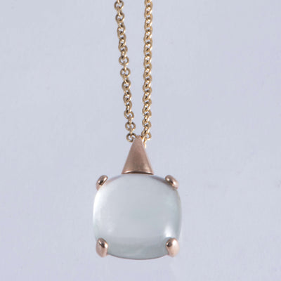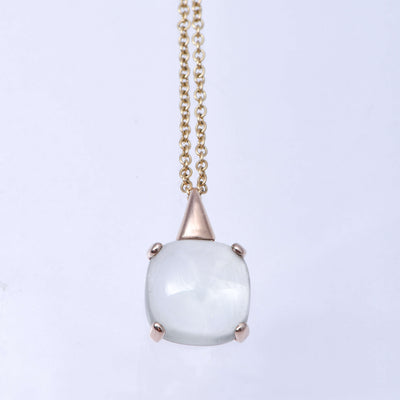 Cabochon cushion apple quartz pendant, with 18ct yellow gold, four claw setting, on 18ct yellow gold 16" trace link chain.